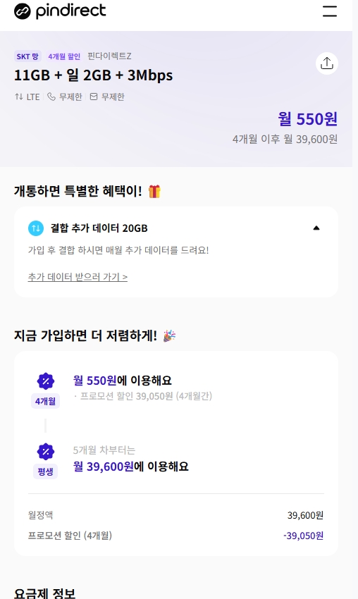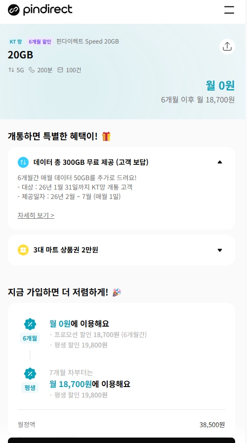 핀다이렉트SK망 120기가+5MPS 1100원, 11기가+2기가+3MPS 550원 KT망 20기가+50기가 0원 알뜰폰/뽐뿌 작성자 정보 관리자 쪽지보내기 메일보내기 자기소개 아이디로 검색 전체게시물 쪽지보내기 메일보내기 자기소개 아이디로 검색 전체게시물 작성 작성일 2026.01.16 19:09 컨텐츠 정보 793 조회 0 추천 0 비추천 목록 본문 무한 통신의 시작 Zhttps://www.yogeum.com/stkt341 0 추천 0 비추천 SNS 공유 관련자료 링크 https://www.yogeum.com/stkt341 212 회 연결 이전 핀다이렉트KT 20기가(2월~6개월간 50기가제공) + 바로유심 2만원 상품권 110원 총 70기가 작성일 2026.01.24 00:19 다음 알뜰폰) SK 알뜰망 100기가 5MPS 3300원 , 11기가+2GB+3MPS 2200원 작성일 2026.01.05 22:00 댓글 0 등록된 댓글이 없습니다. 로그인한 회원만 댓글 등록이 가능합니다. 목록